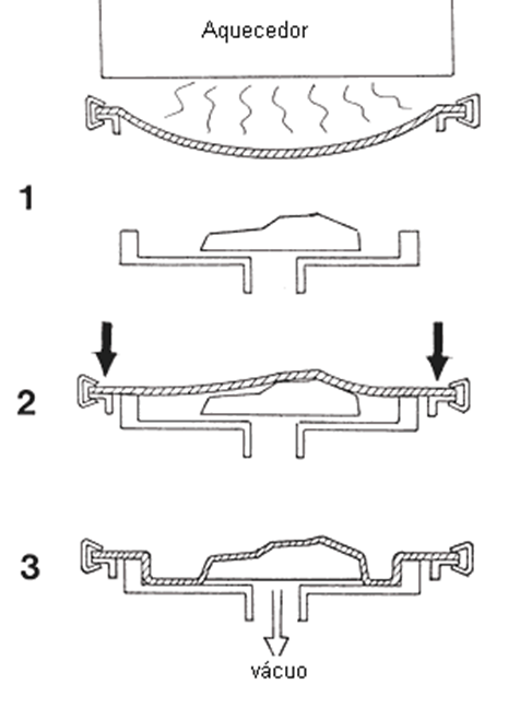 Basicamente, o processo consiste em aquecer uma folha de plástico termoplástico até que ela fique maleável e, em seguida, colocá-la sobre um molde pré-fabricado. O vácuo é aplicado na parte traseira do molde, puxando o plástico para baixo e moldando-o conforme o formato desejado.